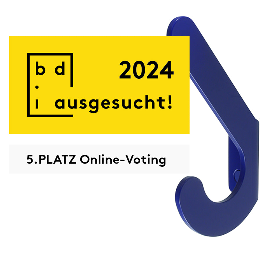 Unser Garderobenhaken BEN hat beim diesjährigen Online-Voting des bdia ausgesucht! 2024 den hervorragenden 5. Platz belegt! Zum Beitrag beim bdia >>>