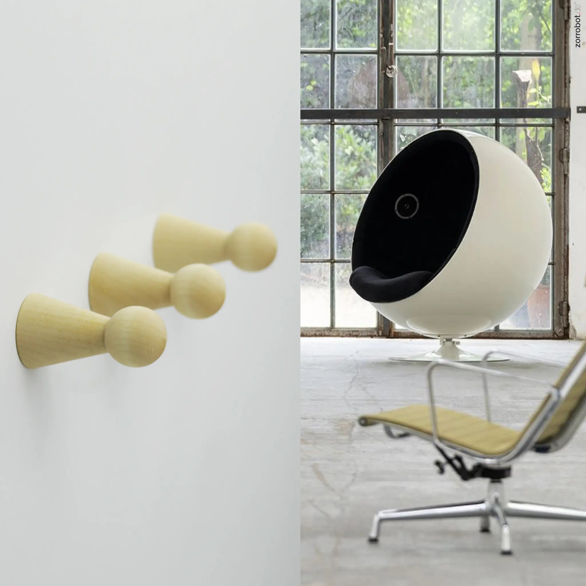 Unsere in Süddeutschland gedrechselten Knopfhaken geben dem Eingangsbereich ein natürliches Bild und laden ein, mit ihnen die Wand individuell zu gestalten. Die Haken können per Hand durch die zentrale Schraube werkzeuglos an der Wand platziert werden.